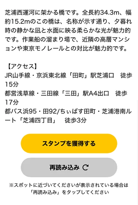 ポイントに着いたら「スタンプを獲得する」ボタンをタップ -
